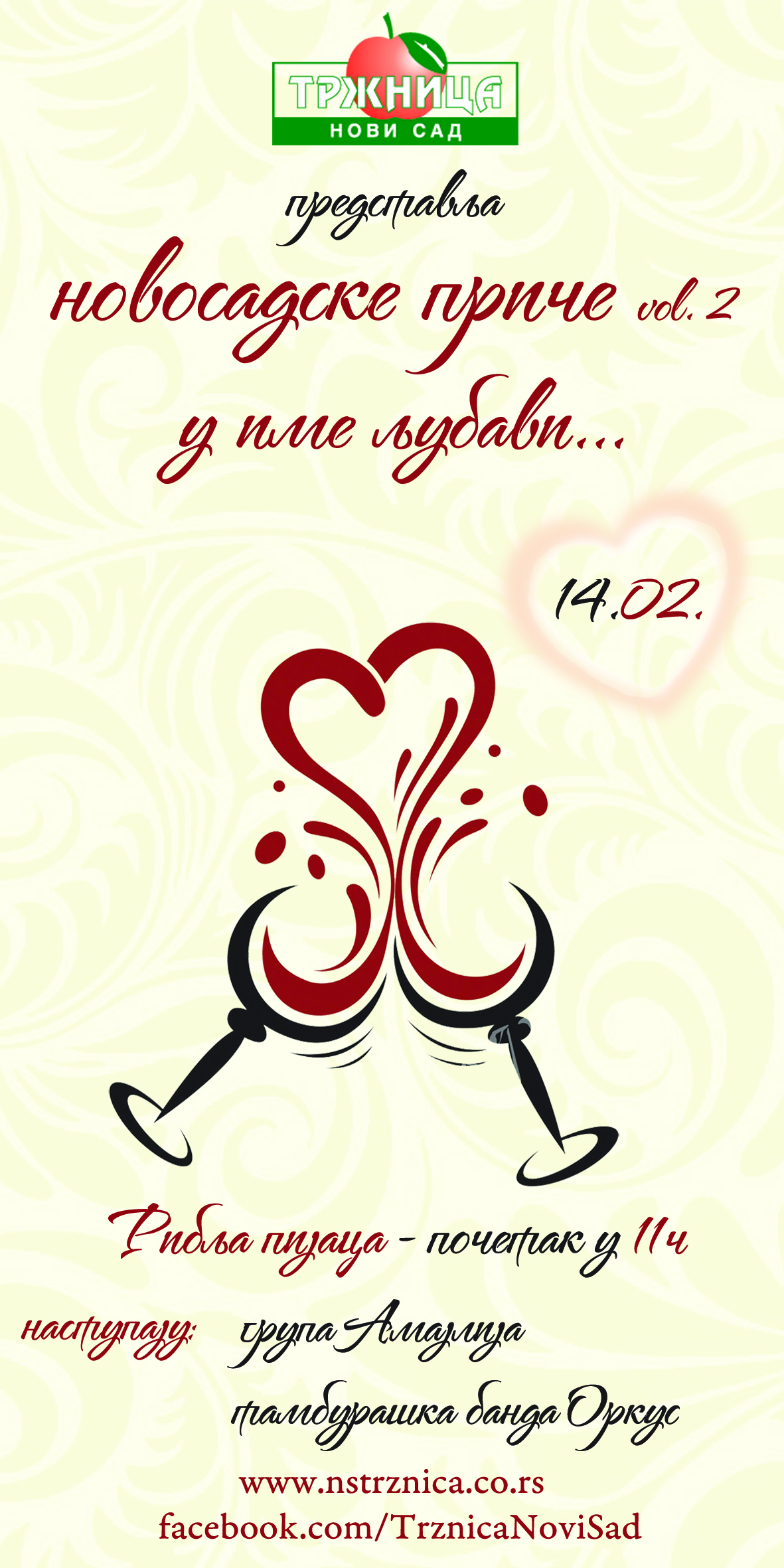 JKP “Tržnica“ Novi Sad, na Ribljoj pijaci organizuje manifestaciju „Novosadske priče vol.2 – u ime ljubavi“ koja će biti održana u subotu, 14. februara 2015. godine od 09.00-15.00 časova.