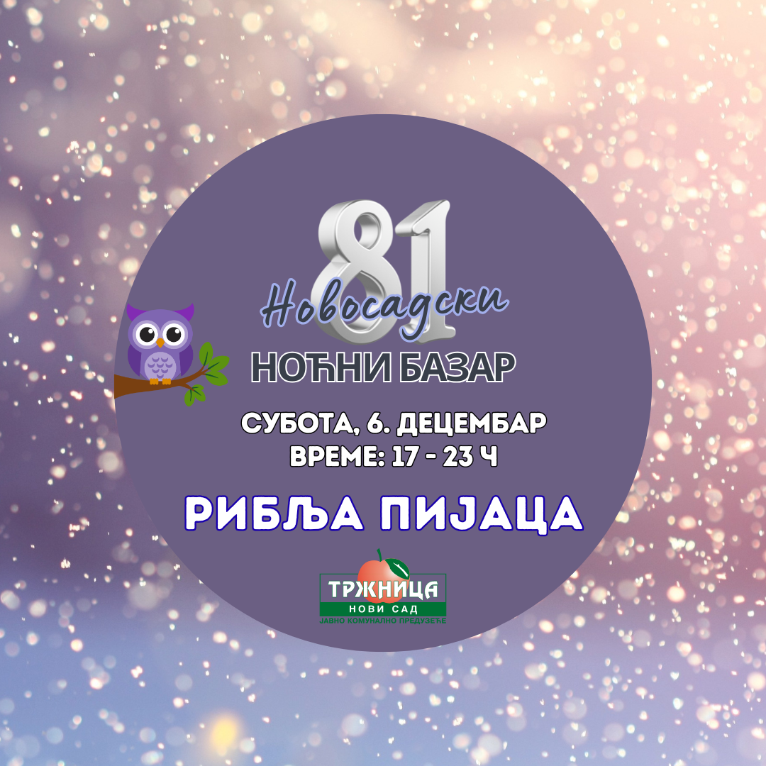 Због лоших временских прилика у планираном термину, на Рибљој пијаци ће се у СУБОТУ, 6. децембра 2025. године, одржати први децембарски Новосадски ноћни базар, а 81. по реду.