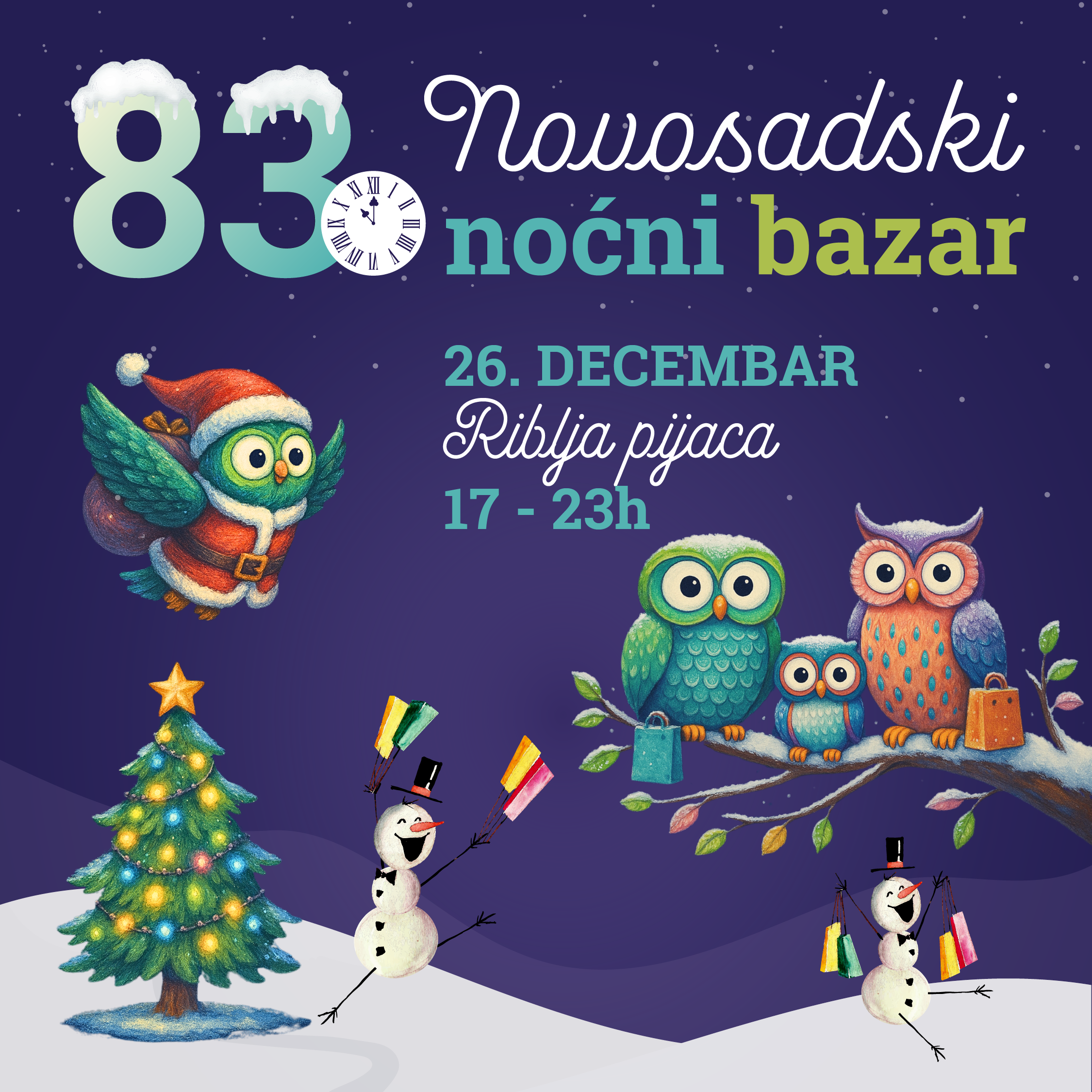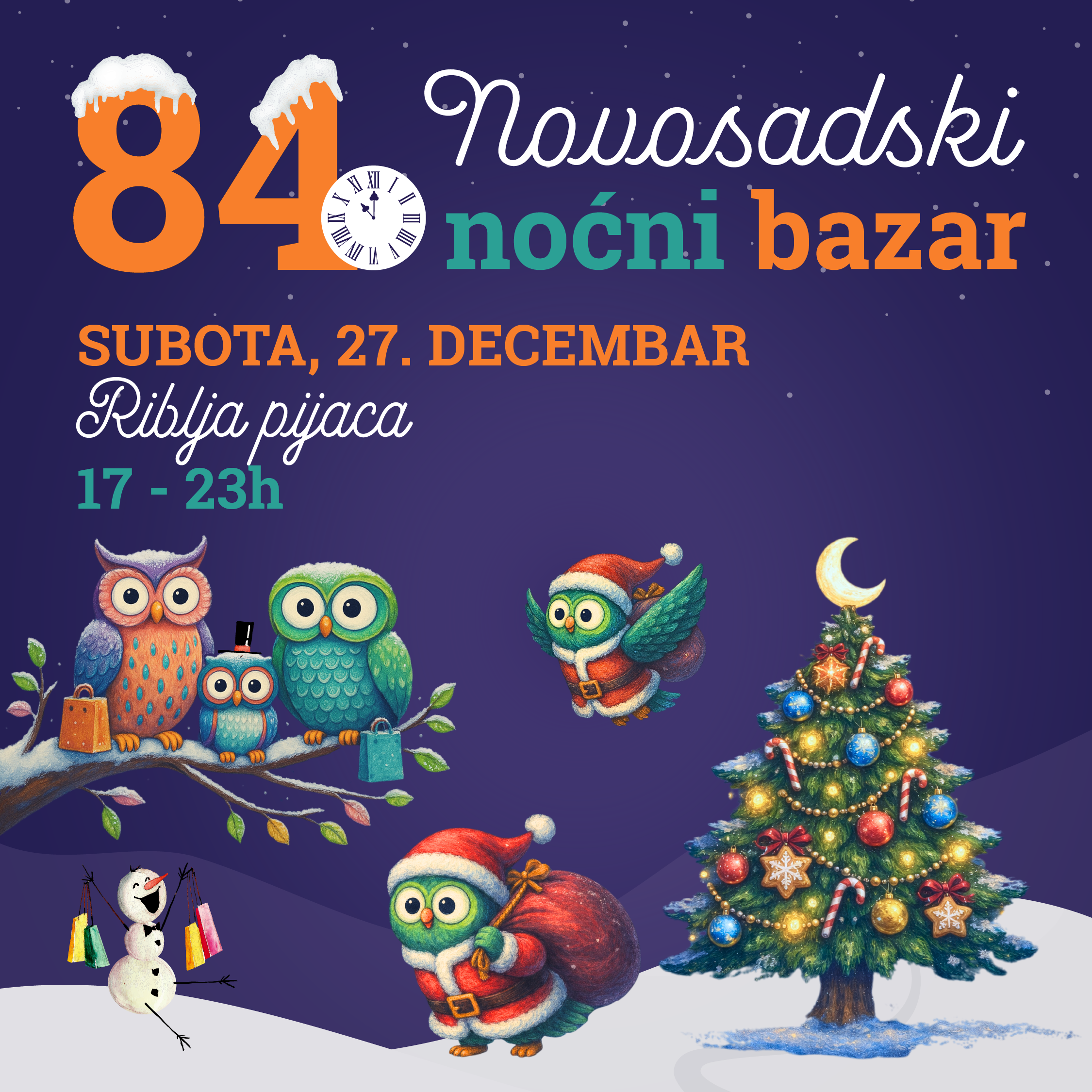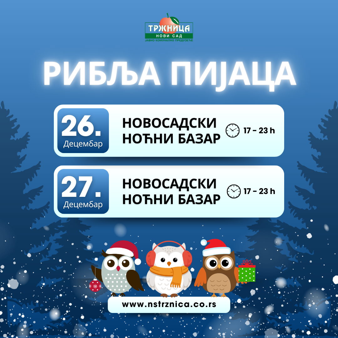 Новогодишња еуфорија почиње на најстаријој новосадској пијаци и то на 83. Новосадском ноћном базару у петак, 26. децембра, и на 84. Новосадском ноћном базару у суботу, 27. децембра, од 17.00 до 23.00 сата!