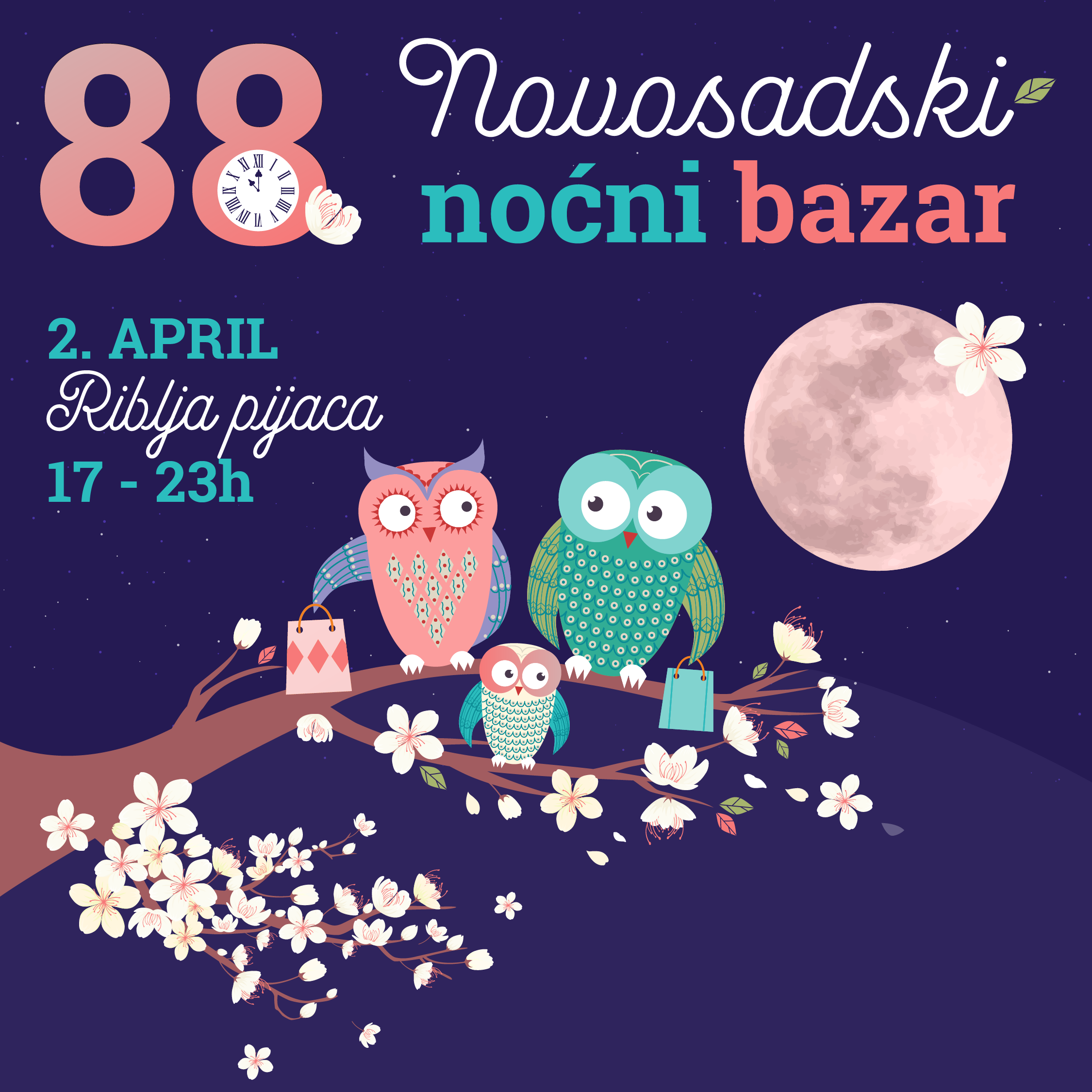 Na Ribljoj pijaci, u četvrtak, 2. aprila 2026. godine, održaće se 88. po redu Novosadski noćni bazar. Ljubitelji proizvoda sa dušom malih proizvođača i rukotvoraca uživaće i ovog puta u raznovrsnoj ponudi i dobroj zabavi.